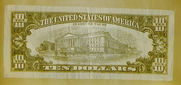 U.S. Ten Dollar Bill - Reverse Side